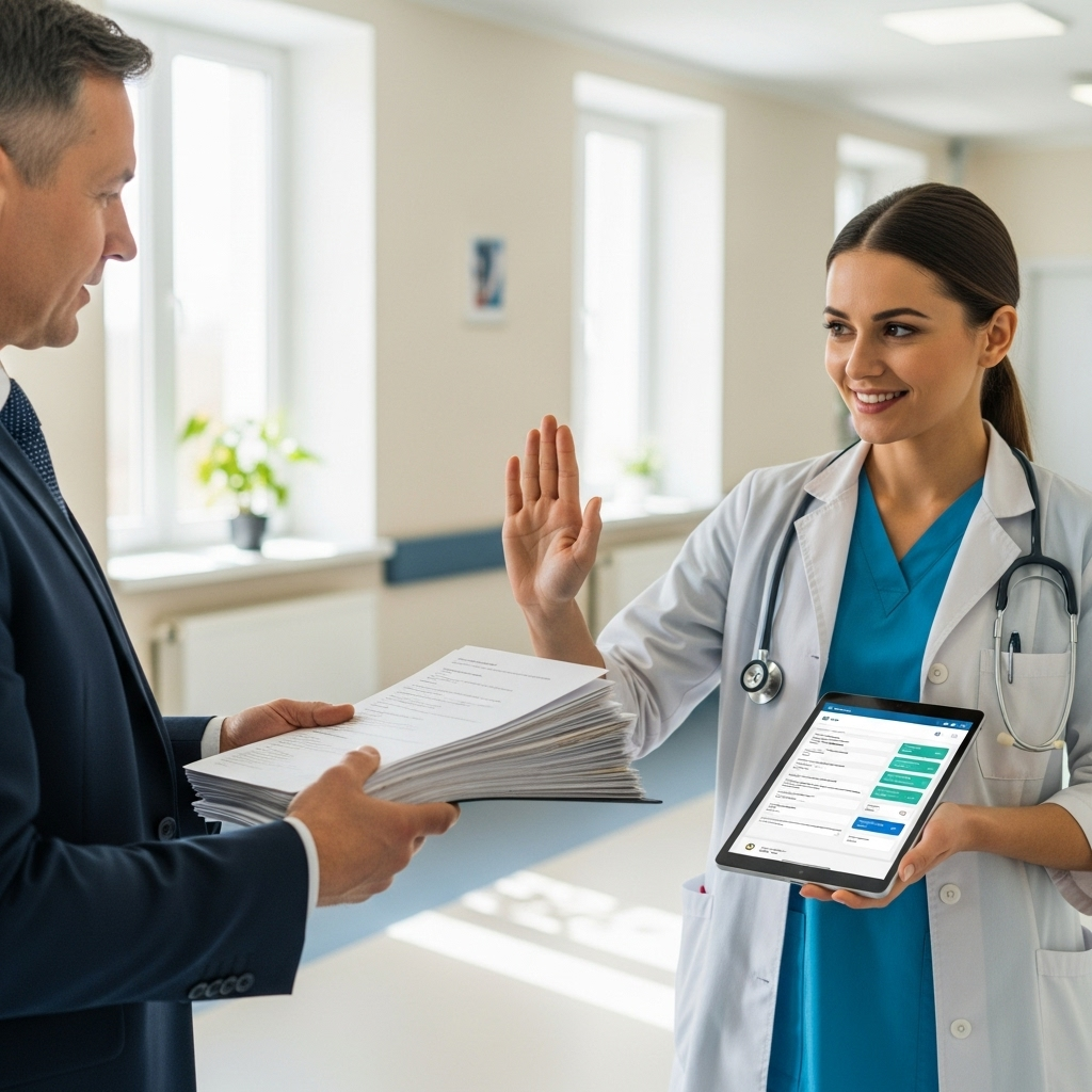 Rzeczywistość operacyjna szpitali opierała się na fizycznym obiegu dokumentacji. Historia choroby była tekturową teczką, a zlecenie badania – kartką papieru wędrującą między oddziałem a laboratorium. Ten model generował fundamentalne problemy:
